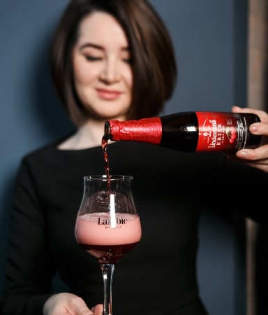 Один из самых популярных видов Ламбика, который производится с добавлением подвяленной вишни. Это придает пиву глубокий, насыщенный цвет и бархатистый вкус с легким оттенком миндаля. Дозревает в бутылках около года.